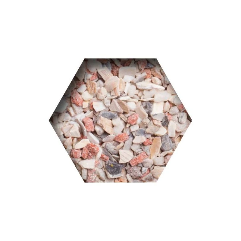 UN MÉLANGE DE MINÉRAUX COMPOSÉ DE GRIT DE COQUILLAGE, DE GRIT DE COQUILLE D’HUITRE, DE GRAVIER ET DE PIERRE ROUGE, ET EST ENRICHI DE L’ANIS.